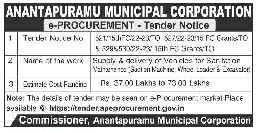 Tender for Supply & delivery of Vehicles for Sanitation Maintenance (Suction Machine, Wheel Loader & Excavator)