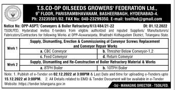 Tender for Supply, Dismantling, Erection & Commissioning of Conveyor Screws Replacement and Conveyor Repair Works