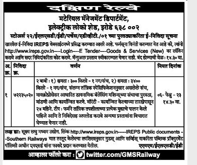 E-TENDER NOTICE FOR SUPPLY OF STORES 22 / ELSD / ED/PURCHASE / ADVT./01