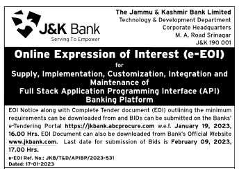 Tender for Supply, Implementation, Customization, Integration and Maintenance of Full Stack Application Programming Interface (API) Banking Platform