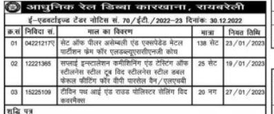 Tender for Supply installation commissioning and testing of stainless steel tube with stainless steel double ferrule fitting for VP parcel chain / LHB