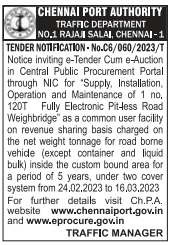 Tender for Supply, Installation, Operation and Maintenance of 1 no. 120T Fully Electronic Pit-less Road Weighbridge