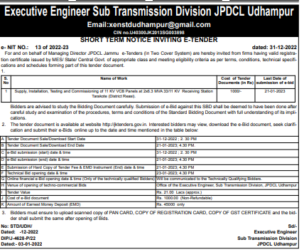 Supply, Installation Testing and Commissioning of 11 KV VCB Panels at 26.3 MVA 33/11 KV Receiving Station