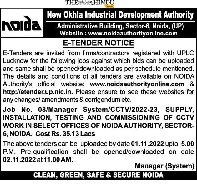 Job No. 08/Manager System/CCTV/2022-23, SUPPLY, INSTALLATION, TESTING AND COMMISSIONING OF CCTV WORK IN SELECT OFFICES OF NOIDA AUTHORITY, SECTOR 6, NOIDA. Cost Rs. 35.13 Lacs
