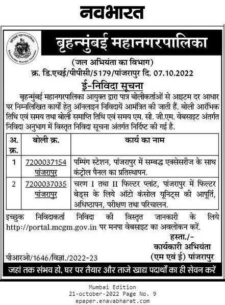 Tender for Supply, Installation, Testing and Operation of Auto Console Units for Filter Beds at Phase I & II Filter Plant, Panjrapur.