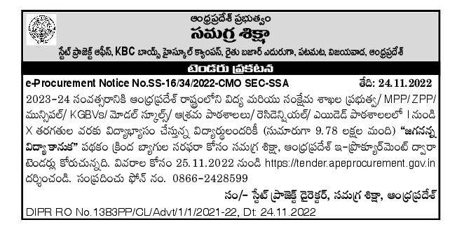 Tender for supply of bags under the scheme “Jagananna | Vidya Kanuka”