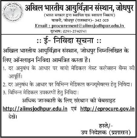 !.Supply of Bio Medical Waste Collection Bags on Rate Contract basis. 2. Tender for various Medical Consumables on rate contract basis. 3.Tender for various medical equipments.