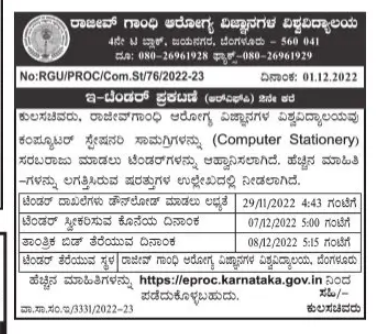 Tender for supply of Computer Stationery. Further details are given in reference to attached conditions.