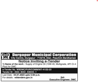 Tender for Supply of Engine Oil (15W-40, Multigrade, API CI-4 Plus) for DMC