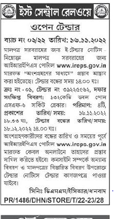 Tender for Supply of Goods – Proposals are invited through IREPS Portal www.ireps.gov.in “By Participation”.
