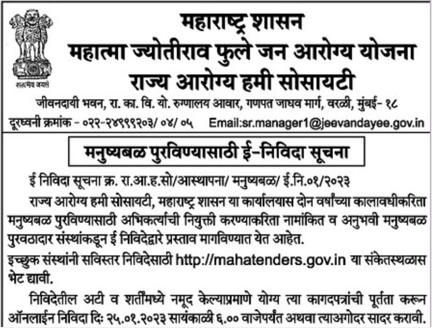 Tender for supply of manpower invited from reputed and experienced manpower supply organizations