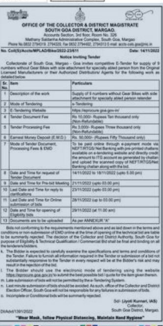 TENDER FOR Supply of numbers without Gear B with side
