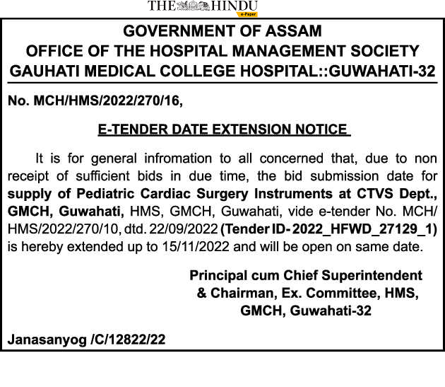 supply of Pediatric Cardiac Surgery Instruments at CTVS Dept., GMCH, Guwahati,