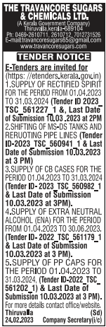 Tender for .SUPPLY OF RECTIFIED SPIRIT FOR THE PERIOD FROM 01.04.2023 TO 31.03.2024 (Tender ID 2023 TSC_561227_1