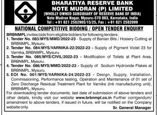 Tender for Supply of Sodium Hydroxide Flakes at BRBNMPL, Mysuru.