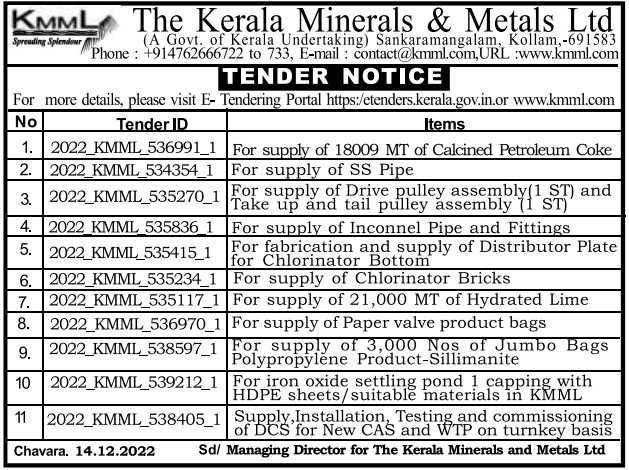 Tender For supply of SS Pipe