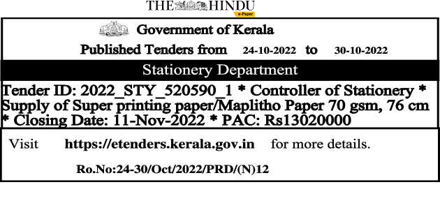 Tender for Supply of Super printing paper