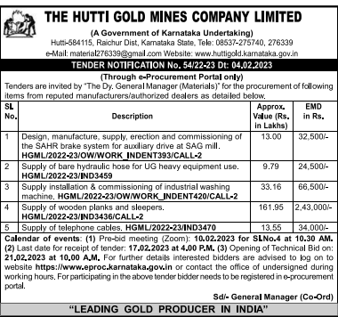 Tender for Supply of telephone cables. HGML/2022-23/IND3470