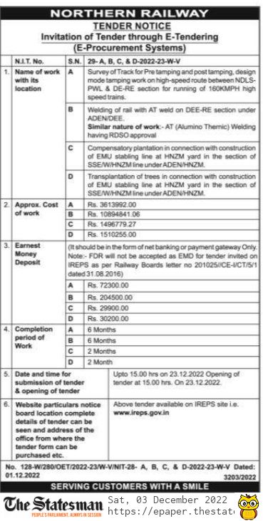 Tender for Survey of Track for Pre tamping and post tamping, design mode tamping work