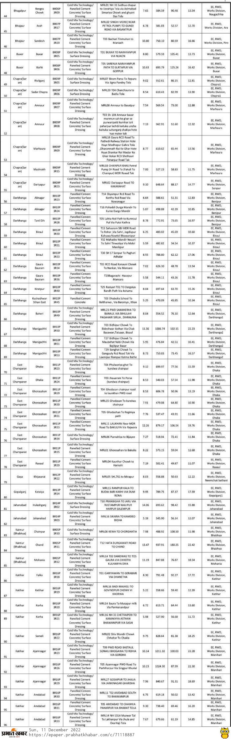 Tender for T03 Dhabolia School To Beltharwa, Via Baraniya, Ithan