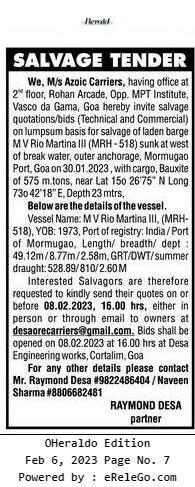 Port, Goa on 30.01.2023, with cargo, Bauxite