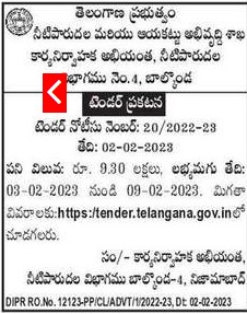 Tender for Telangana Govt ” Executive Officer of Irrigation and Ayakattu Development Department, Irrigation