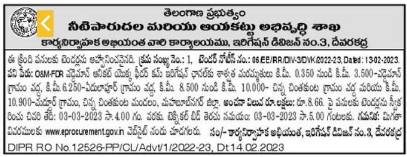 tenders for the above works: 03-03-2023 4.00 hrs. until Technical Bid Opening Time: 03-03-2023 at 5.00 PM