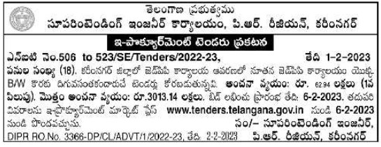 Tenders are invited by the undersigned for B/W. Estimated Cost: Rs.6294 Lakhs (1st