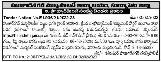 Tender for Telangana Govt Roads and Buildings Department PROCUREMENT ADVERTISEMENT
