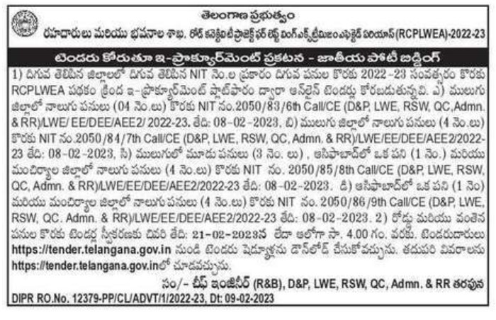 Tender for Telangana Govt Roads and Buildings Department. Road Connectivity Project for Left Wing Extremism Affected Areas