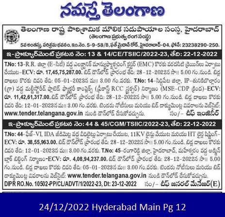 Tender for Telangana Public Sector Undertaking) 5th Floor, Industry Building, Ind.No. 5-9-58/B. Fateh Maidan Road, Hyderabad -04.