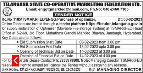 Online Tenders are invited through e-tender platform https://tender.telangana.gov.in