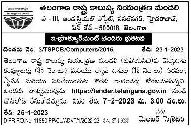 tender.telangana.gov.in. Last Date: 7-2-2023 3.00 hrs.