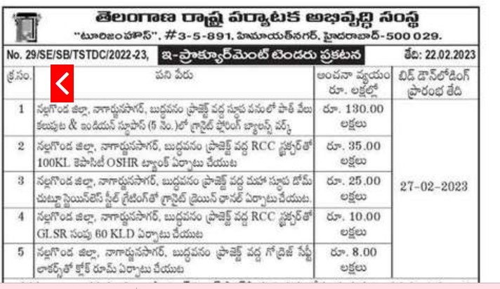 Tender for Telangana State Tourism Development Organization “Tourism House”. #3-5-891. Himayat Nagar, Hyderabad