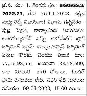 Tender for Telecommunication Works Automatic Block Signaling System for Comprehensive Signaling Works.