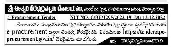 Tender for Temple Facade: For reconstruction of mandapam and installation of flagpole