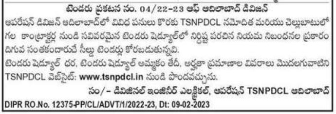 contractors of TSNPDCL for various works at Operation Division Adilabad as per the