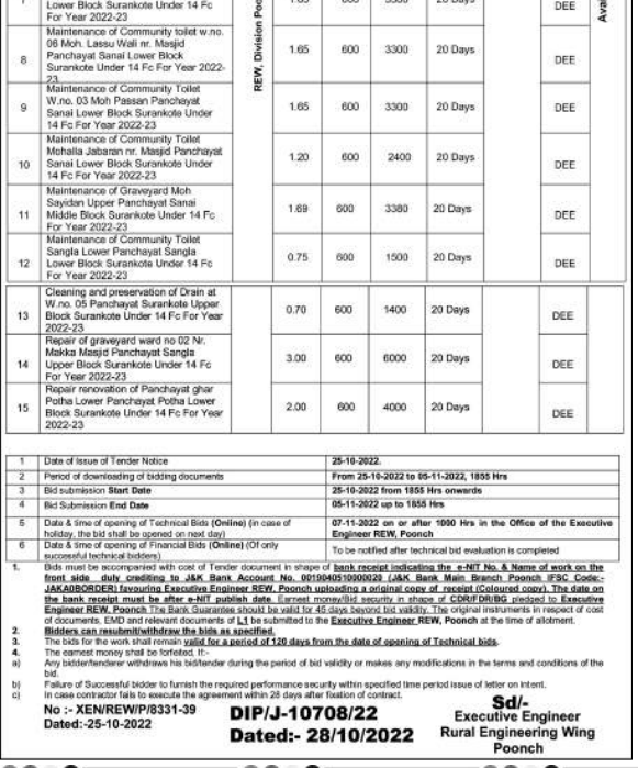Tender for Tender for Maintenance of Community Toilet Sangla Lower Panchayat Sangla Lower Block Surankote Under 14 Fc For Year 2022-23