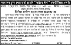 Tender for Tender Invitation Notice No. 03/2022-23 All work related to e-NAM project in the main market area of Krishi Upaj Mandi Samiti, Kekri