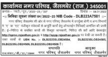 Tender for Tender Notice No. 04 / 2022-23 NIB Code DLB223A7581 On behalf of Municipal Council Jaisalmer, the above will be done in Municipal Council Jaisalmer and other departments