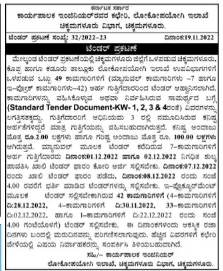Tender For Tenders are invited from qualified contractors for a total of 49 works (Mutel Works-7 and E-Folk Works-42) under Ippa and Kadur Taluk Public Works Department sub-divisions.