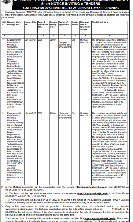Tender for The consultant should have satisfactor ly completed, as prime consultantsimi- lar nature of work foratleast25% of number of bridges with minimum span of 40 meters along with the preparation of DPRsor a atleast 2 no bridge