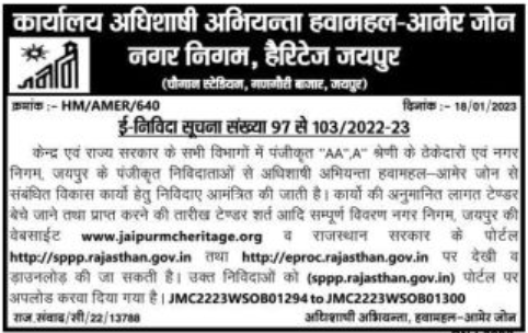 Corporation, Jaipur in all departments of Central and State Government. Estimated cost of the works.