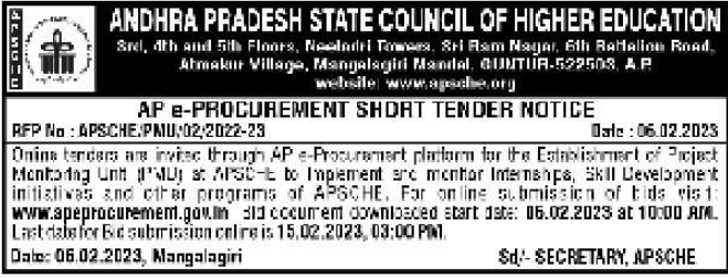Tender for the Establishment of Project Montang Un MD & APSC to Implement arc mentor Internships, Skill Development initiativas and other programs of APSCHE.