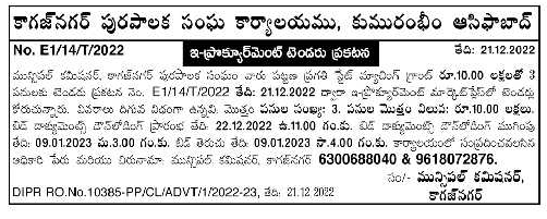 Tender for The Municipal Commissioner, Kagaznagar Municipal Corporation of works