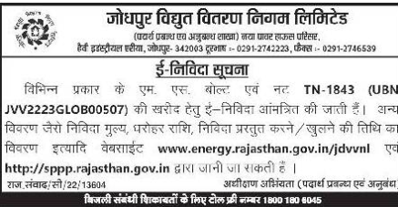 Tender for the purchase of JVV2223 GLOB00507). others Description Zero Tender Price EMD Date of Submission / Opening of Tender