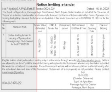 In F. 1(464/SA PNS/Estt/E-Tender/2021-22/