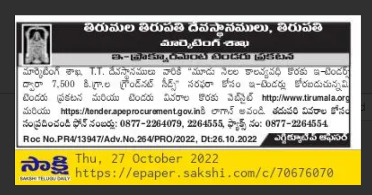 Tender for the supply of “7,500 kg of ground nut seeds through e-tenders for a period of three months”