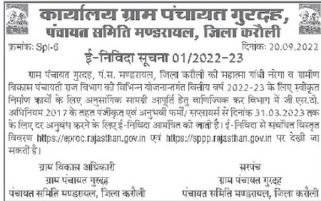 Department for the supply of relevant materials for the approved construction works for the financial year 2022-23.