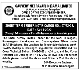 Tender for the work in Magadi, Ramanagara, Kanakapura and Channapatana Taluks under SCP/TSP Scheme.